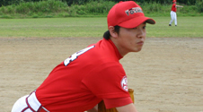 東京建物を蹴散らすリクルートコスモス北関東 唯一のヒットを放った東京建物・菊地選手 |