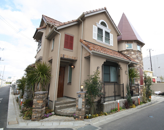 ◇ ◆ ◇ 同社の分譲戸建てはこれまでたくさん見学してきたので、ある程度の見当は付いていた。南仏のデザインを取り込んだというのも理解できる。武蔵浦和駅、あるいは北戸田駅から現地までの道路にはほとんど街路樹がなく、現地周辺も倉庫、工場、マンションなどの殺風景な景色が多い。思い切って明るい色を使って雰囲気を一変させようという意図だ。 外観意匠に赤茶色の尖塔屋根や明るい瓦屋根、アーチ状の窓、鎧戸、石積み調のサイディング、自然石の石畳、ハンギングブラケットなどを採用したのにその意図が読み取れる。瓦屋根などについては、金児氏は「先日なくなった伊藤さん(ポラス暮し科学研究所顧問)と話し合って初めて企画に盛り込んだもの」と話した。 内装にもアンティークウッド、アール状のニッチ、南仏に多く見られるというフックなどを採用。2.7メートルの天井高、2.2メートルのハイサッシ、15段の階段ステップなどは他の物件と同じだ。 モデルハウスは2号棟の出来がいい。玄関を入ってすぐ板の間付きの和室を設置しているほか、廊下幅を広くし、2階の主寝室は勾配屋根を利用し天井高を3メートル近く取り、さらに階段室の空間を利用した書斎コーナーも設けている。