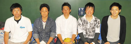 「相手が一枚上だった」−田辺監督のこの言葉に象徴されているように、総合力、強いてあげれば守りの差が出た試合だった。旭化成はミスを最小限に食い止め、ケンはミスから傷口を広げた。 2回の攻防の場面。この回、旭化成の先頭の5番佐藤は巧打者。小笠原は3塁邪飛に討ち取ったが、金子3塁手が落球。このあと四球を与え盗塁も許してピンチを広げた。6回も曲者の三好が四球を選んだあとすぐに盗塁を決めて小笠原を揺すぶり得点につなげた。 一方のケンはちぐはぐな攻撃が悔やまれる。初回の1死1、3塁からの重盗。「へぼなショートだったら成功するだろう」と堀井・元旭化成監督が話したように、草野球ではよくあるシーンだ。しかし、山本も北寒寺もまったく隙を見せなかった。1塁走者の羽中田はスタートがよく完全なセーフだった。単独盗塁で、1死2、3塁から4番の小笠原に賭ける手はなかったか。 7回の攻撃もどうか。2死1、3塁。サインはエンドランだったようだが、1塁走者の矢澤が飛び出しけん制アウト。 野球はいかにミスを少なくするかのスポーツでもある。金子も矢澤も責められない。「完敗」と小笠原が振り返ったように、総合力では旭化成とケンの差はまだまだある。旭化成は5安打で4得点、残塁は3。ケンは7安打で2得点、残塁は7。数字がその差を物語っている。 旭化成に勝てるチームは、打線を完全に牛耳る投手がいるチームか、今野をKOするぐらいの打撃力があるチームのどちらかだ。それともう一つ、山本のコンピュータを狂わす頭脳も欠かせない。 旭化成ホームズの内定者5人もベンチで観戦 左から横田さん、原田さん、工藤さん、池田さん、白鳥さん 旭化成の来年卒業予定の5人の採用内定者がベンチで観戦した。横田淳さん、原田豪さん、工藤悠介さん、池田圭さん、白鳥剛司さんだ。それぞれ球歴を聞いた。 横田さんは群馬県の館林出身で、青山学院では軟式のセンター。原田さんは桜美林−立教。立教では準硬式のセンター。高校では捕手。工藤さんは横浜−明治学院卒。高校では1塁手で、明治学院ではショートでレギュラーを務めた。池田さんは慶応高校−慶大の準硬式。東急不動産と東京建物にそれぞれ入社した選手のこともよく知っていた。白鳥さんは、北寒寺選手と同じ錦城高校出身。大学では野球はやっていないという。 試合後はみんな「素晴らしい選手ばかり」と本音か外交辞令か分からないが、持ち上げていた。 ケンコーポ プロも注目した戸畑−九州東海大卒の小田 (29)が加入 ケンコーポ小田 ケンコーポに戸畑高校時代、甲子園に出場しプロからの誘いも受けた九州東海大卒の小田選手(29)が加入した。この日は1番左翼手を務めたが、打撃では4打数ノーヒット。7回の無死満塁の好機では3塁ゴロに倒れた。試合後は「力んでしまった」と反省した。田辺監督は「まだ実践は2試合目」とかばった。 身長は173センチしかないが、出塁すれば相手をかき回すタイプか。シーズンでは1番打者に定着するのは間違いなさそうだ。